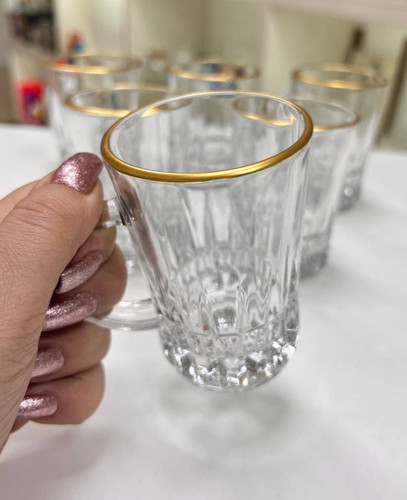 نیم لیوان اوستون شیشه ای لب طلا کاوه