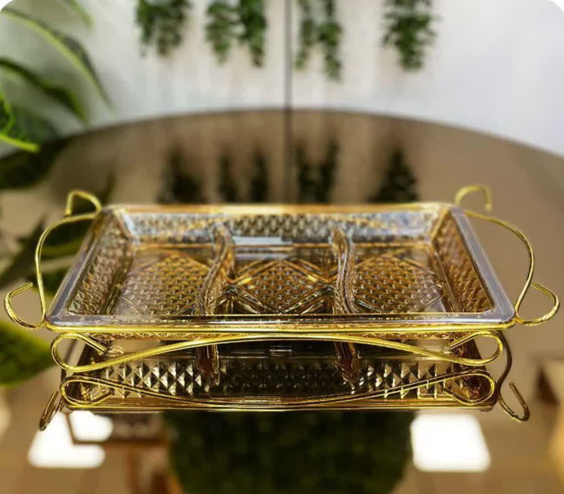 اردوخوری سه قسمتی شیشه پایه طلایی