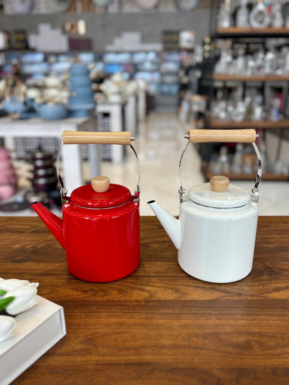 کتری لعابی وارداتی 🇨🇳 در طرح های رنگ سفید و قرمز و طرح میوه