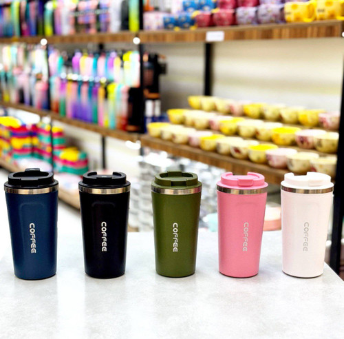 تراول ماگ پاستیلی coffe استیل 500 میلی رنگ خردلی