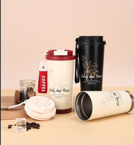 تراول ماگ happy استیل ۵۰۰ میل بنددار کیفیت عالی وارداتی