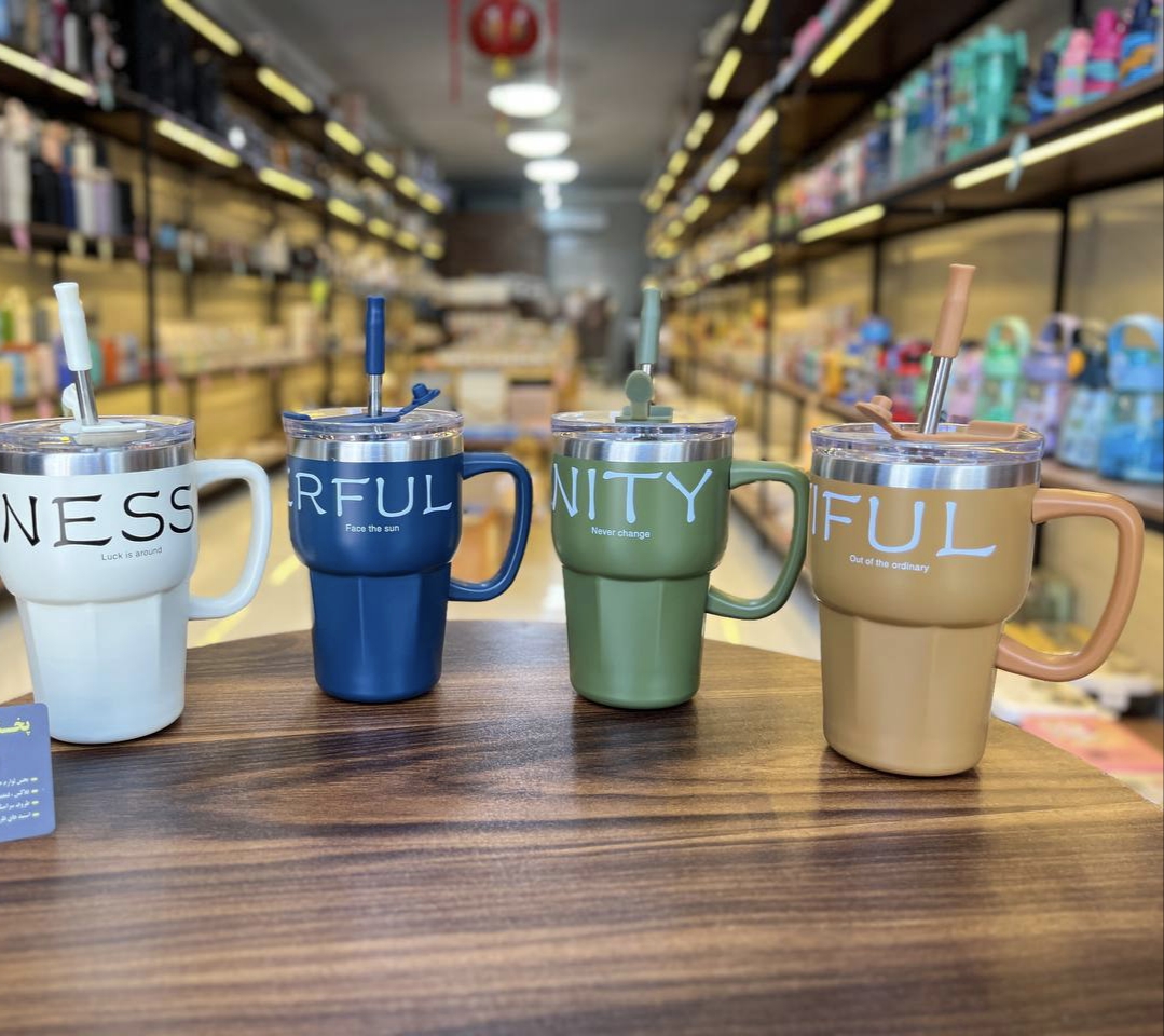 تراول ماگ happy استیل ۵۰۰ میل بنددار کیفیت عالی وارداتی