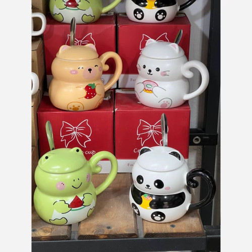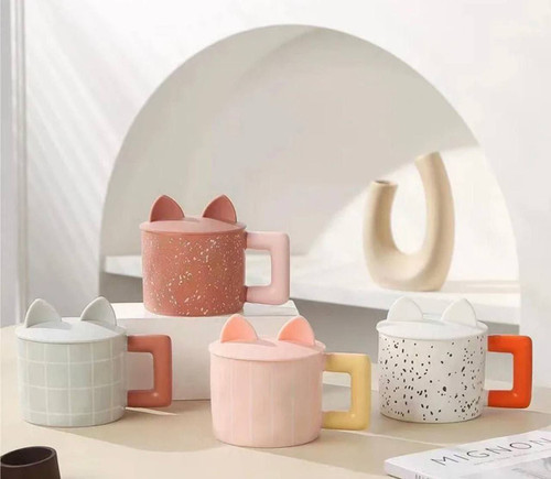 ماگ گوش گربه سرامیکی درب دار سیلیکونی