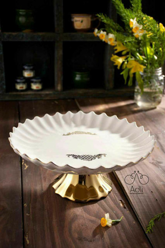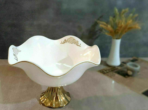 میوه خوری چینی پایه طلایی لب طلا در دوسایز