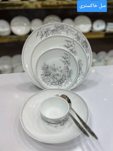 سرویس ۴۲ پارچه گرد کلاسیک برند دینو مدل جتون خاکستری