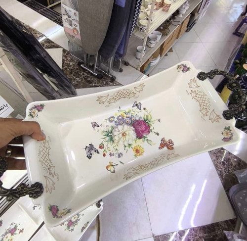 تابه مستطیل گود دار چینی پذیرایی دسته آنتیک لاله