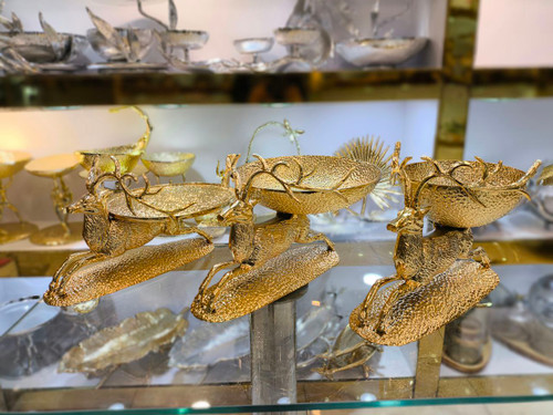 سرویس ۳ تیکه گوزن پرشی در دورنگ طلایی و نقره ای آبکاری شده