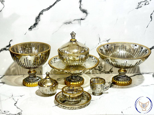 سرویس پذیرایی ۵ تیکه خط دار در دورنگ طلایی و نقره ای آبکاری فورتیک