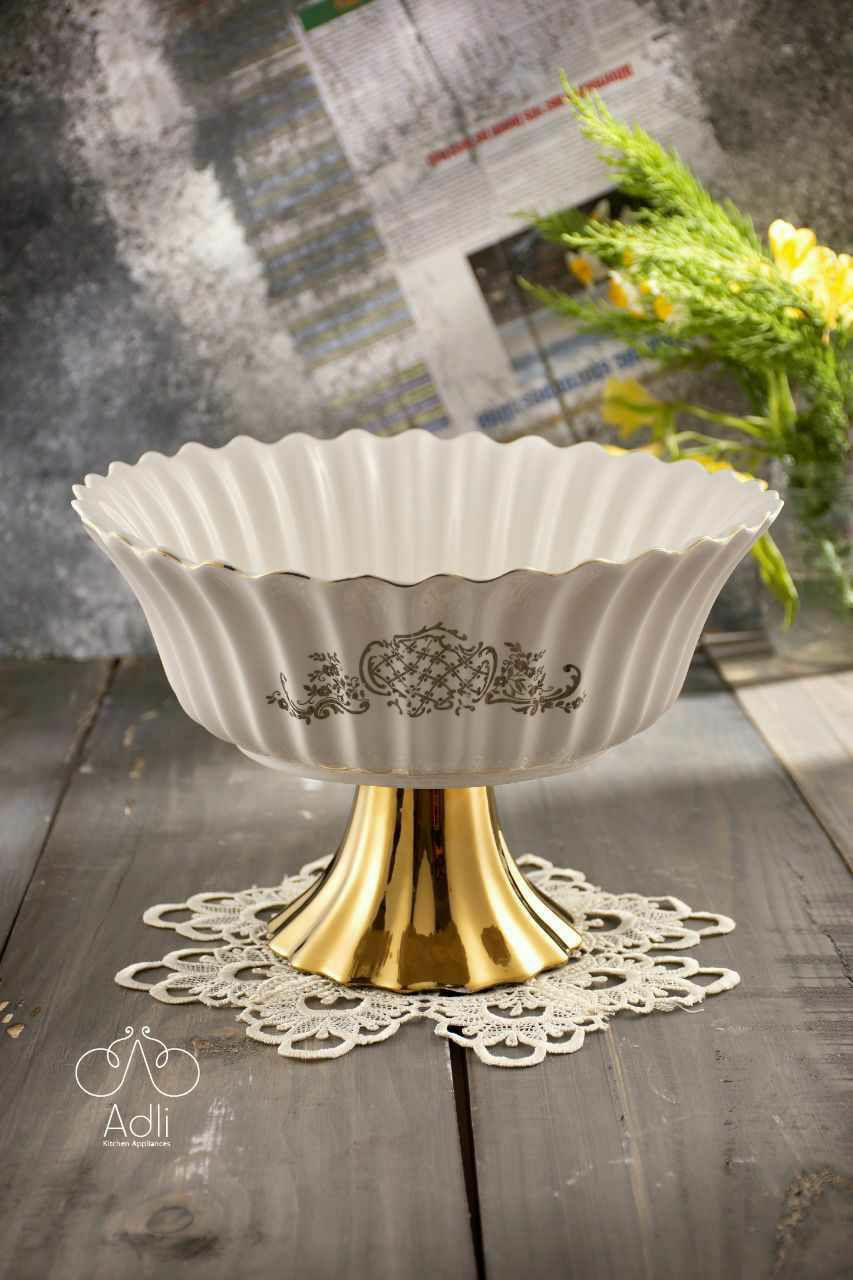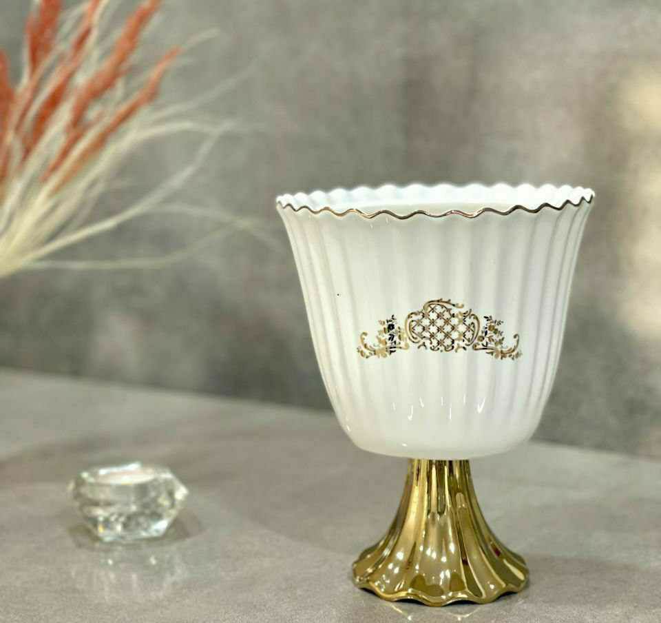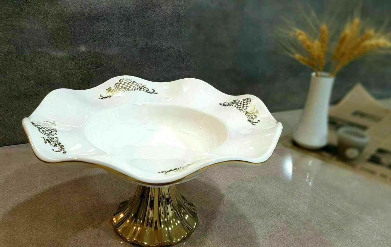 میوه خوری چینی پایه طلایی لب طلا در دوسایز