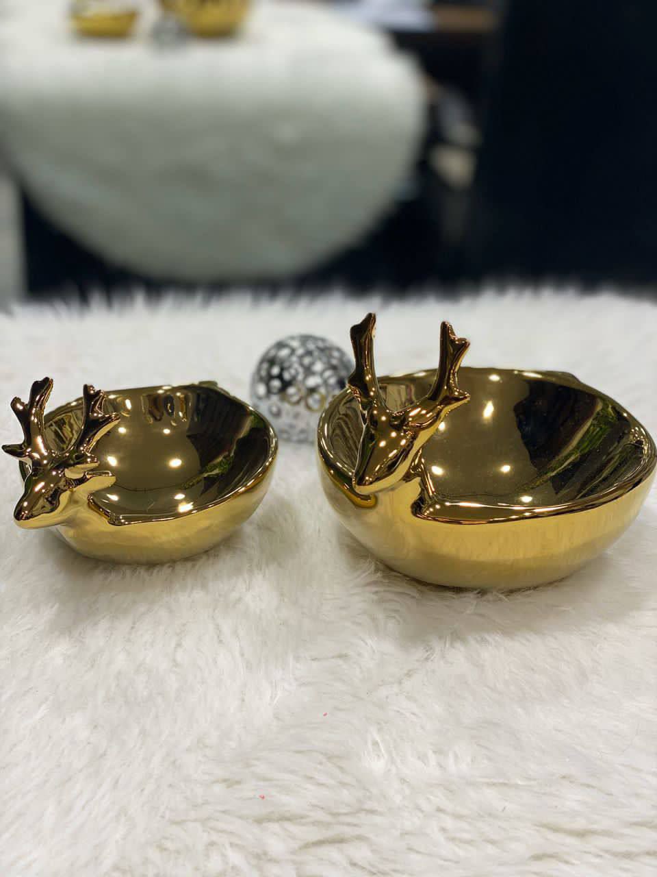 کاسه گوزن تنقلات آبکاری طلا رنگ ثابت