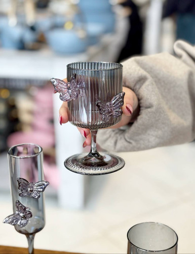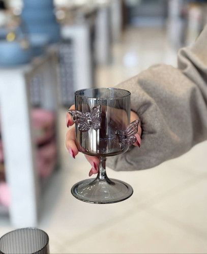 دسر خوری پیرکس شیار دار رنگ دودی وارداتی پروانه تکی