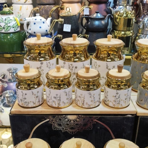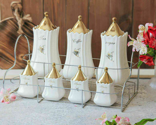 ست پاسماوری و جا ادویه چینی درجه یک استند دار طلایی کیفیت عالی