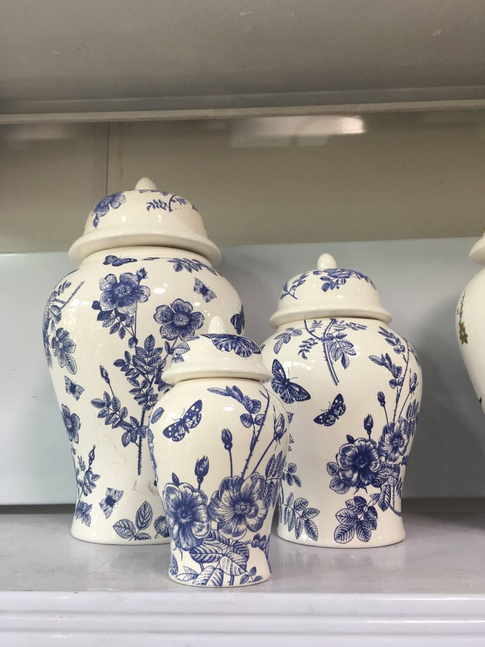 جینجر جار ۳ تایی سرامیکی درجه یک آبی سنتی گلدار