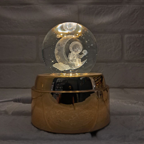 گوی چرخشی چراغدار پایه طلایی در ۲ سایز