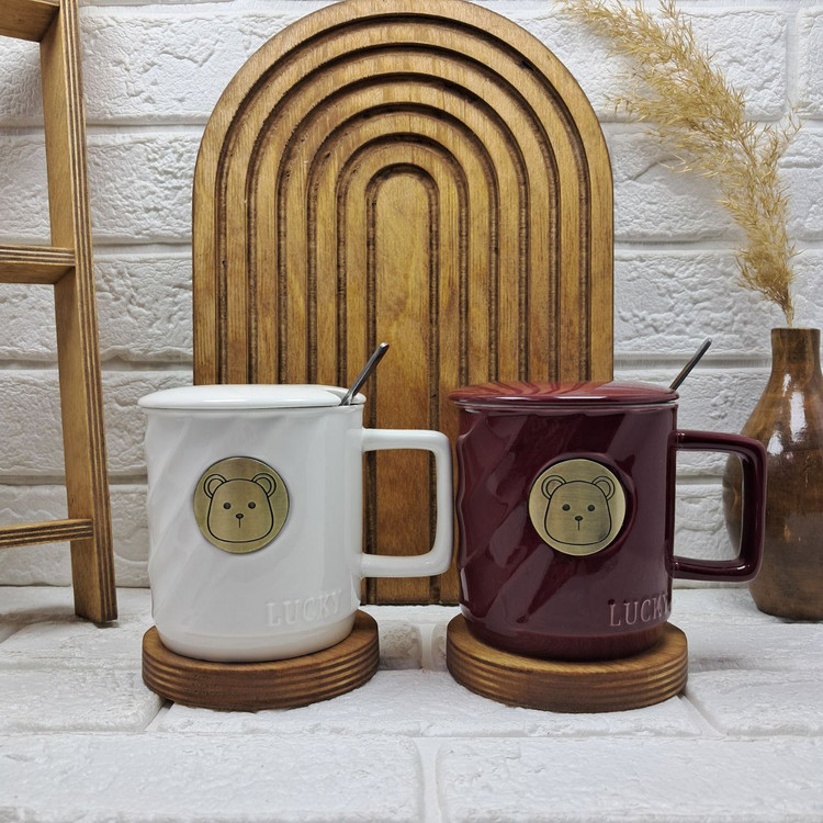 ماگ چینی خرس طلایی درب دار قاشق دار کیفیت عالی