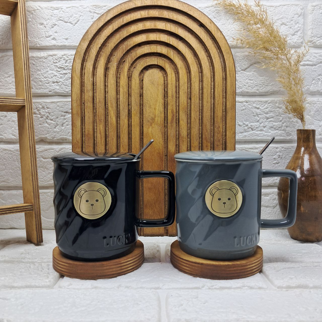 ماگ چینی خرس طلایی درب دار قاشق دار کیفیت عالی