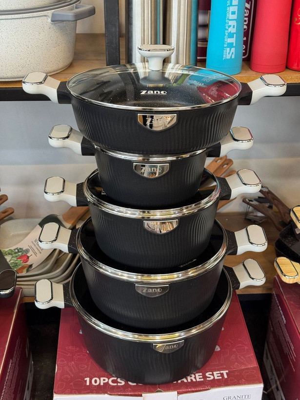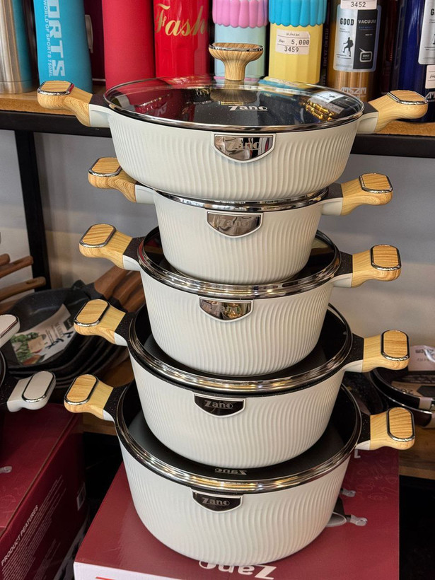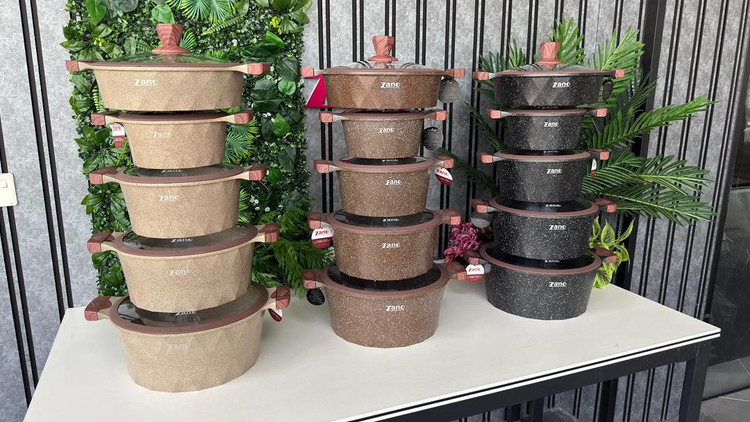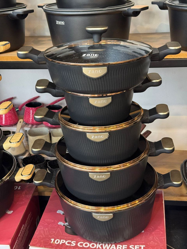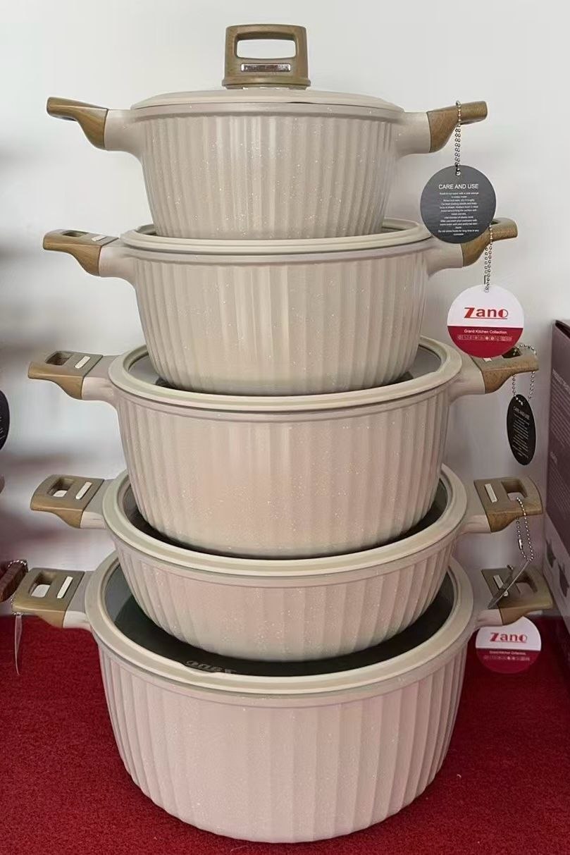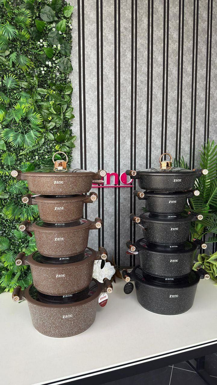 ✅سرویس 10پارچه قالب گرد چدن گرانیت،داخل گرانیتی،کف اینداکشن القایی،دسته چوبی ،بار وارداتی ساخت کشور چین