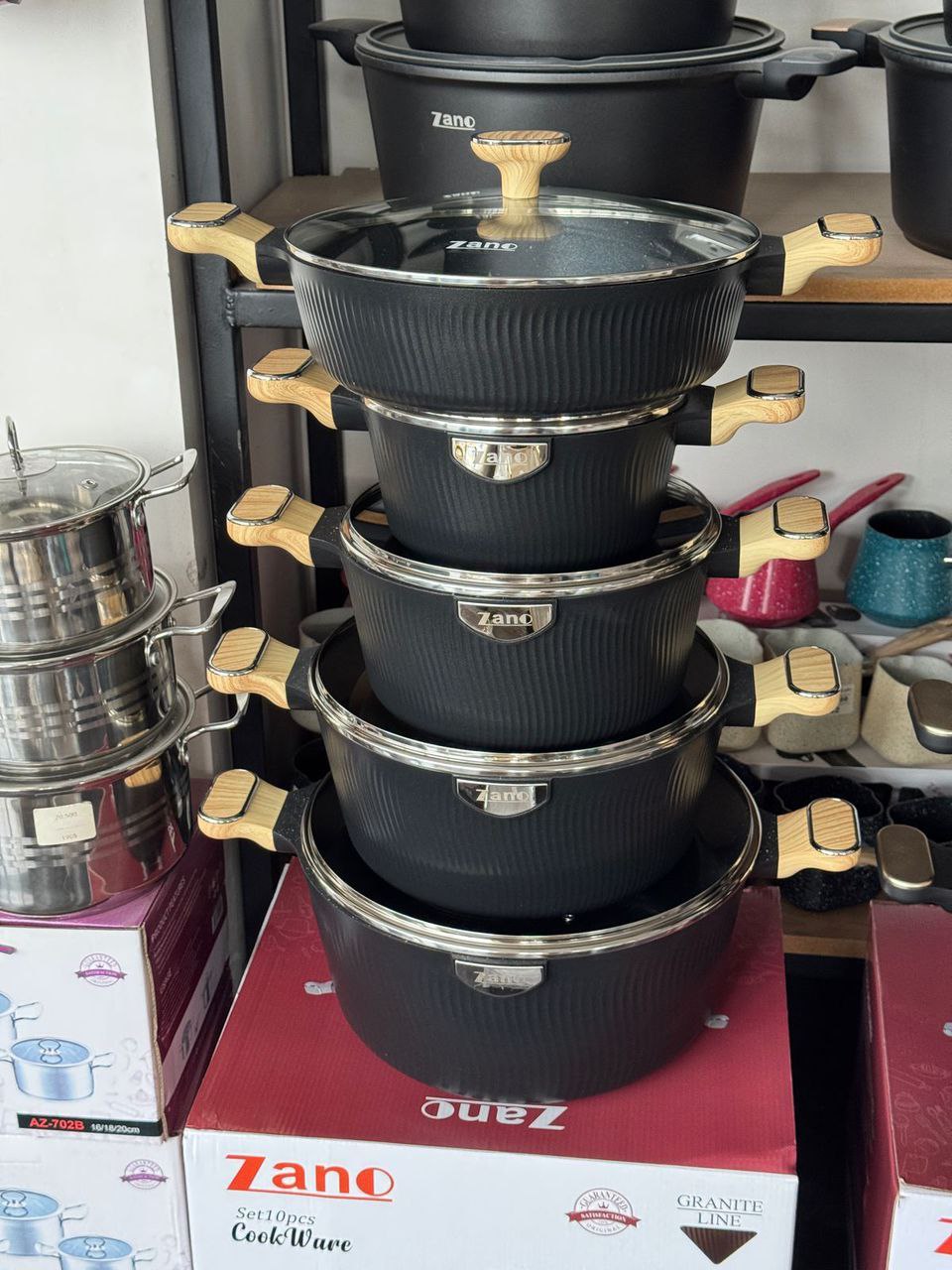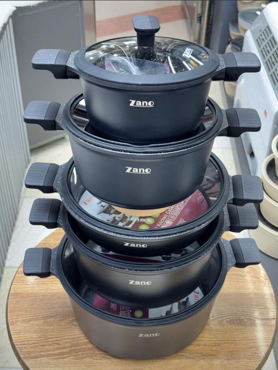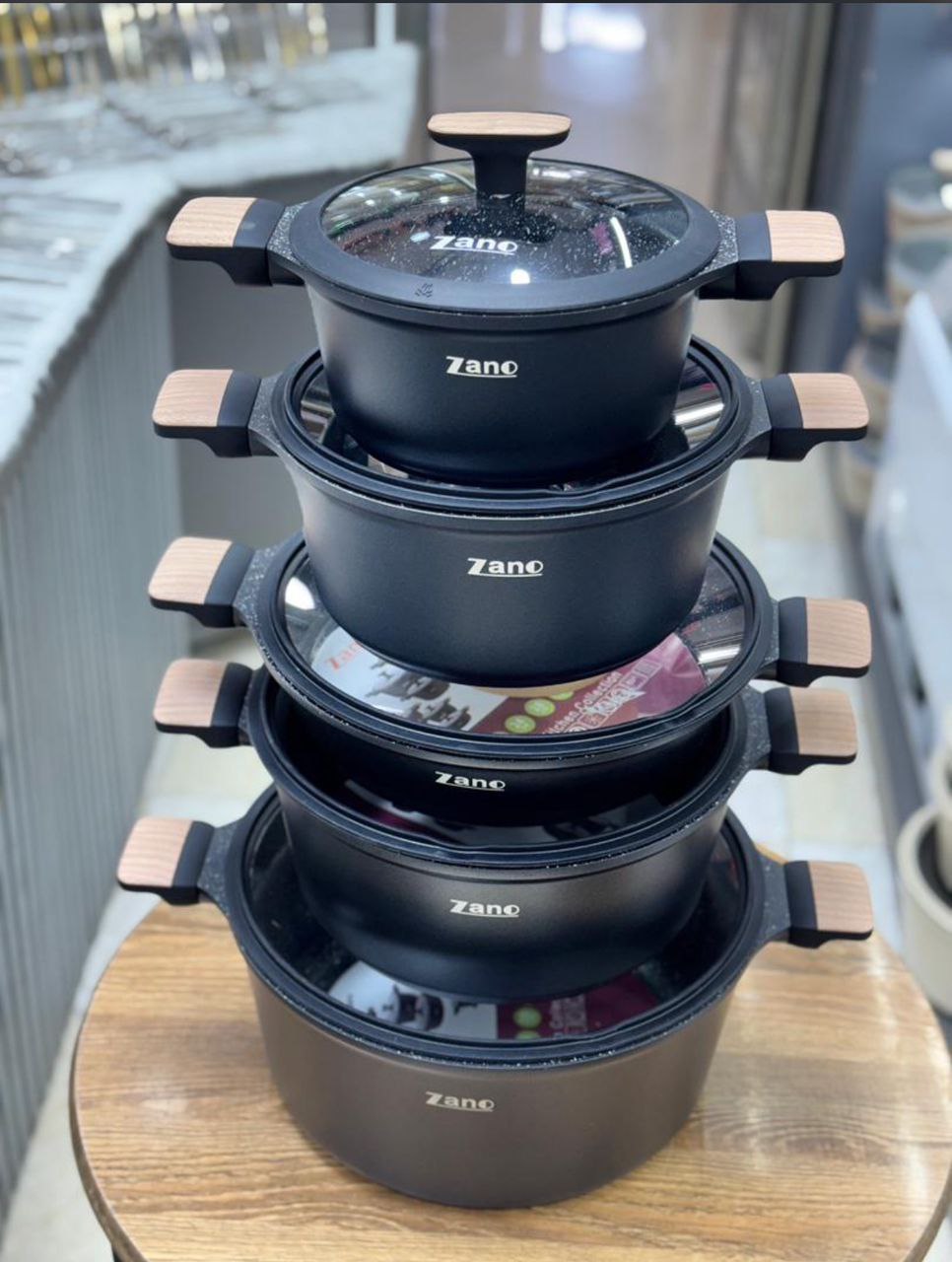 ✅سرویس 10پارچه قالب گرد چدن گرانیت،داخل گرانیتی،کف اینداکشن القایی،دسته چوبی ،بار وارداتی ساخت کشور چین