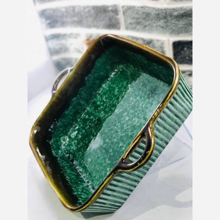 ظرف مستطیل لعابی سرامیکی سبز