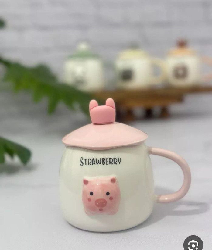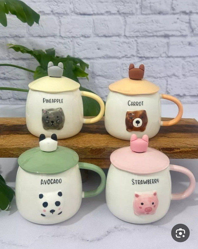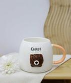 🟡ماگ چینی برجسته درب دار قاشق دار