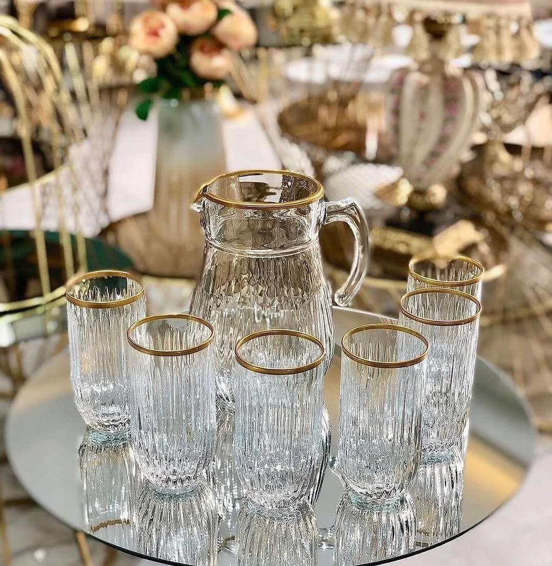 ست پارچ و لیوان ۶ تایی سولو لب طلایی کیفیت عالی