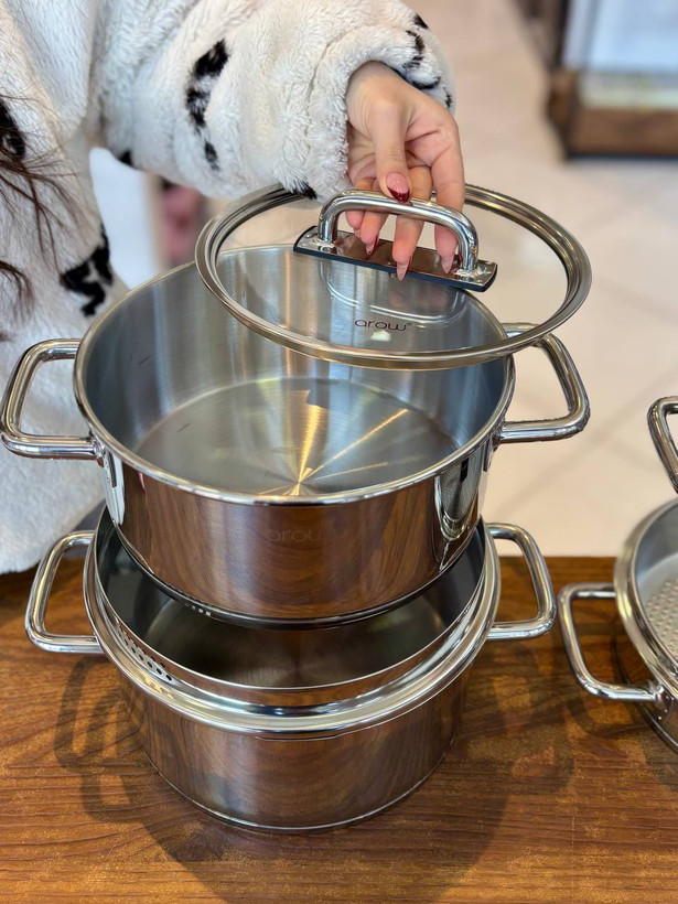 اقلام شامل: ۱عدد قابلمه سایز ۲۴ و ۱ عدد قابلمه سایز ۲۲ و ۱ عدد قابلمه سایز ۲۰ و ۱ عدد تابه سایز ۲۴