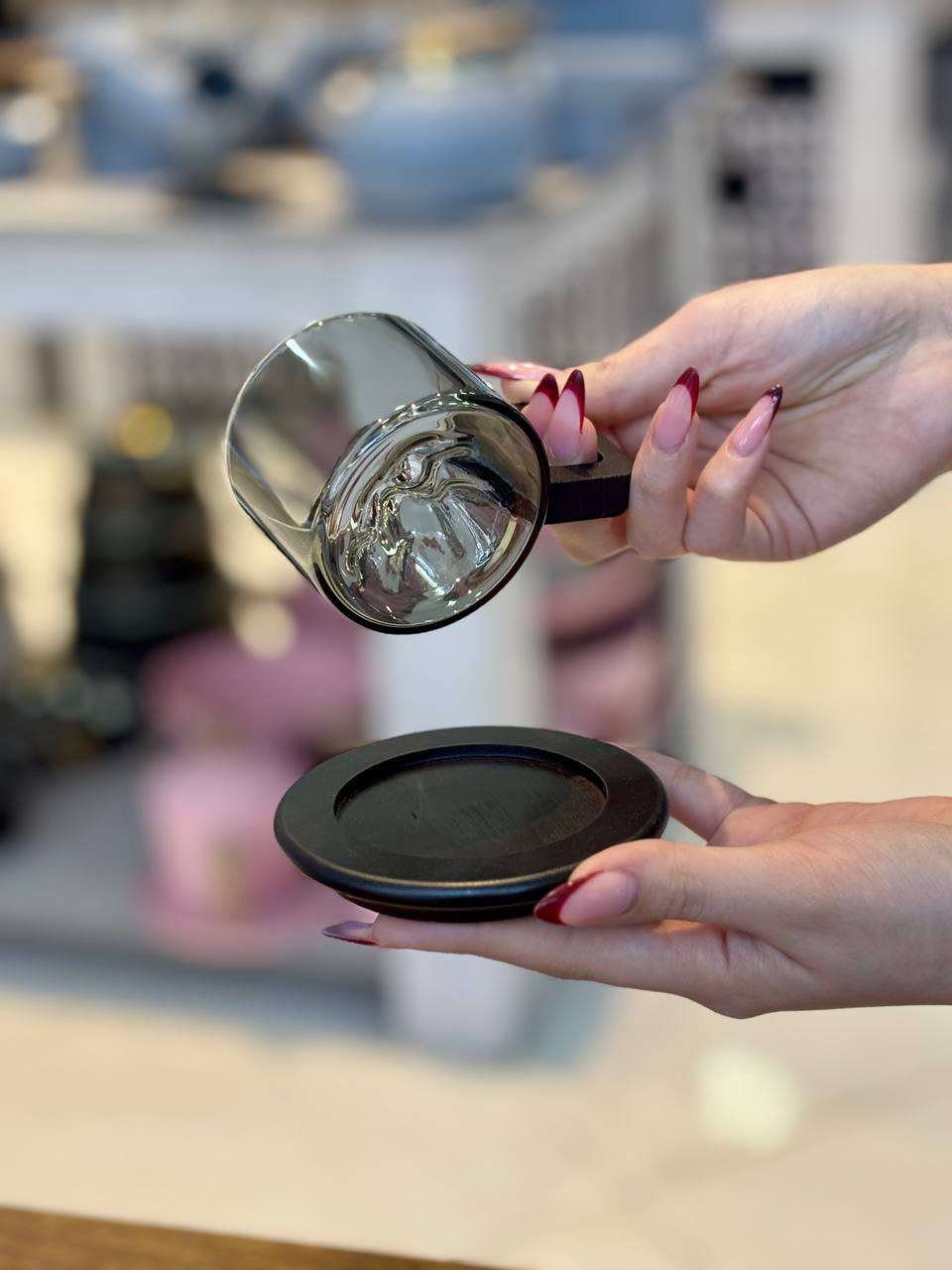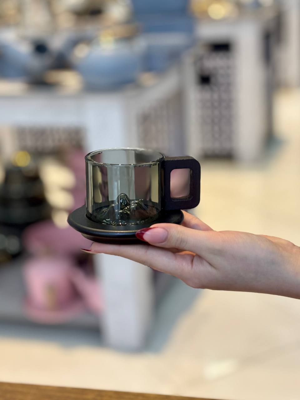چایخوری پیرکس زیره چوبی تکی رنگ دودی وارداتی🇨🇳 کد محصول: KIT-2049 ارتفاع: 5 سانتی متر قطر دهانه: 6.5 سانتی متر