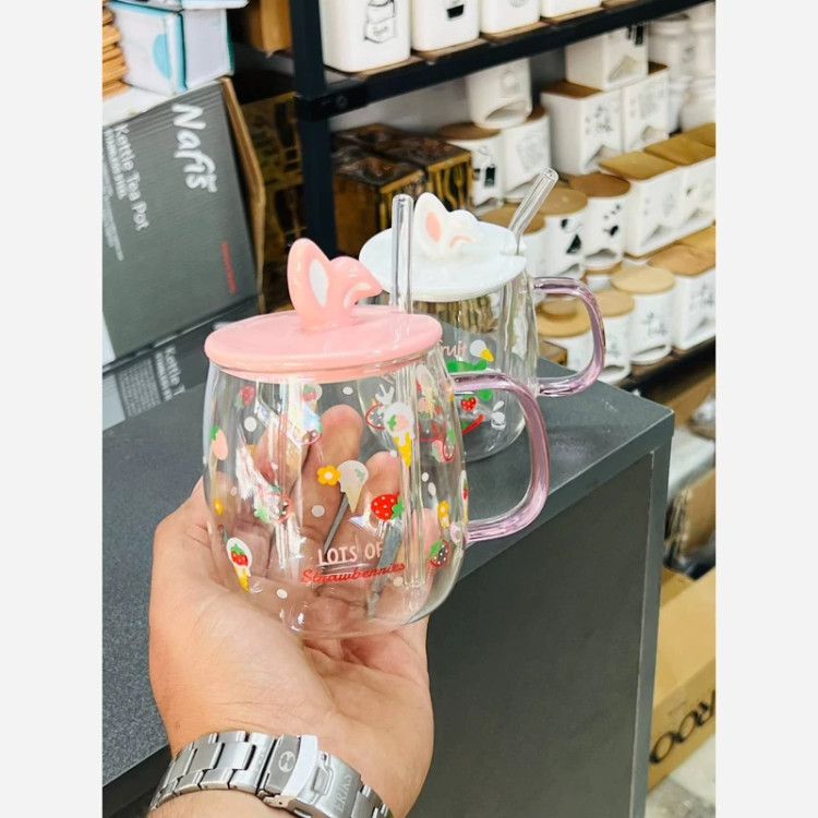 🌻ماگ پیرکس درب خرگوش نی دار کد( 115)