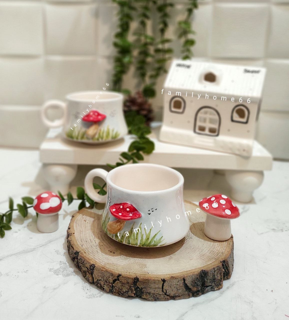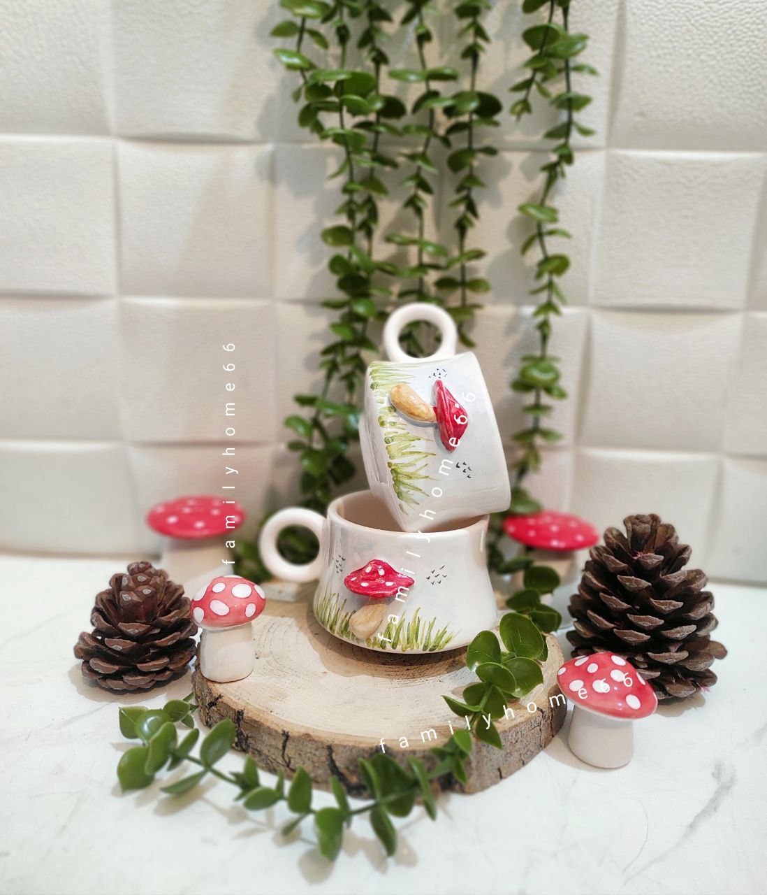 فنجان طرح قارچ برجسته سرامیکی