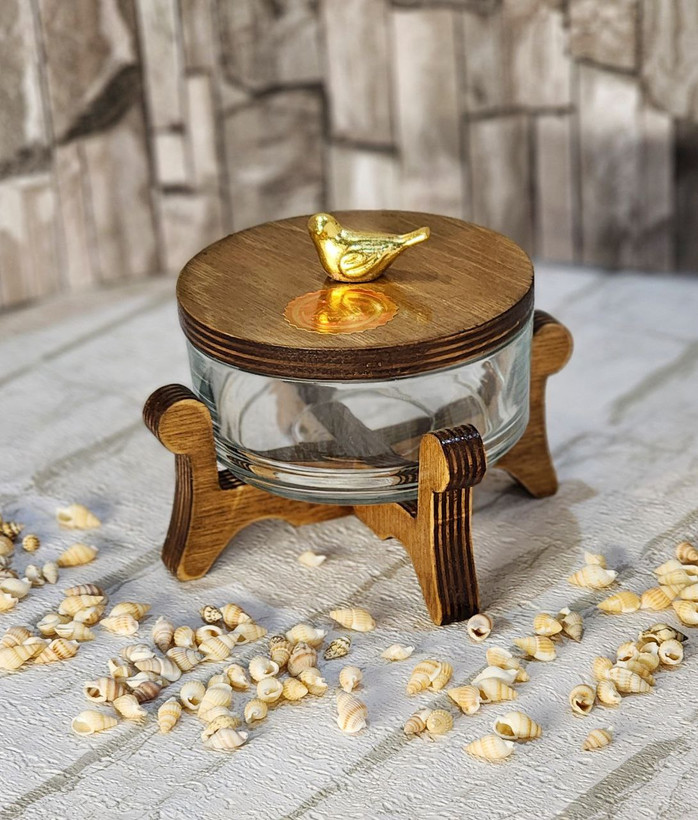 کاسه گرد بلور شیشه ای درب دار پایه چوبی sivan