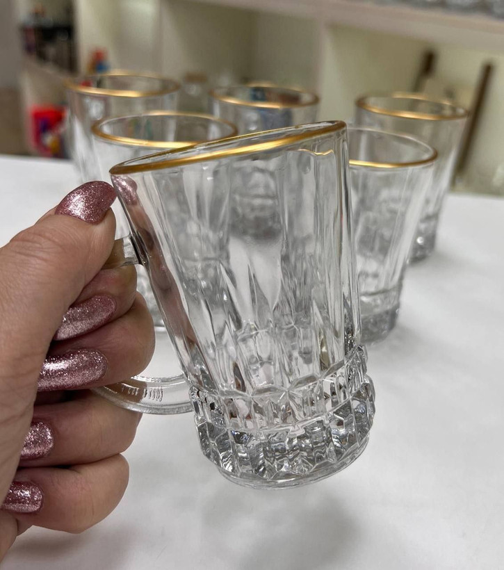 نیم لیوان اوستون شیشه ای لب طلا کاوه