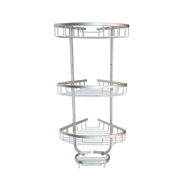 قفسه حمام سه طبقه از جنس آلومینیوم دارای سه طبقه جهت قرار دادن لوازم حمام. یک جای صابون نیز در پایین تعبیه شده است.محلی مناسب برای قرار دادن صابون، شامپو، لیف و سایر لوازم حمام همواره از منظر بهداشتی، راحتی و زیبایی مورد توجه بوده است.