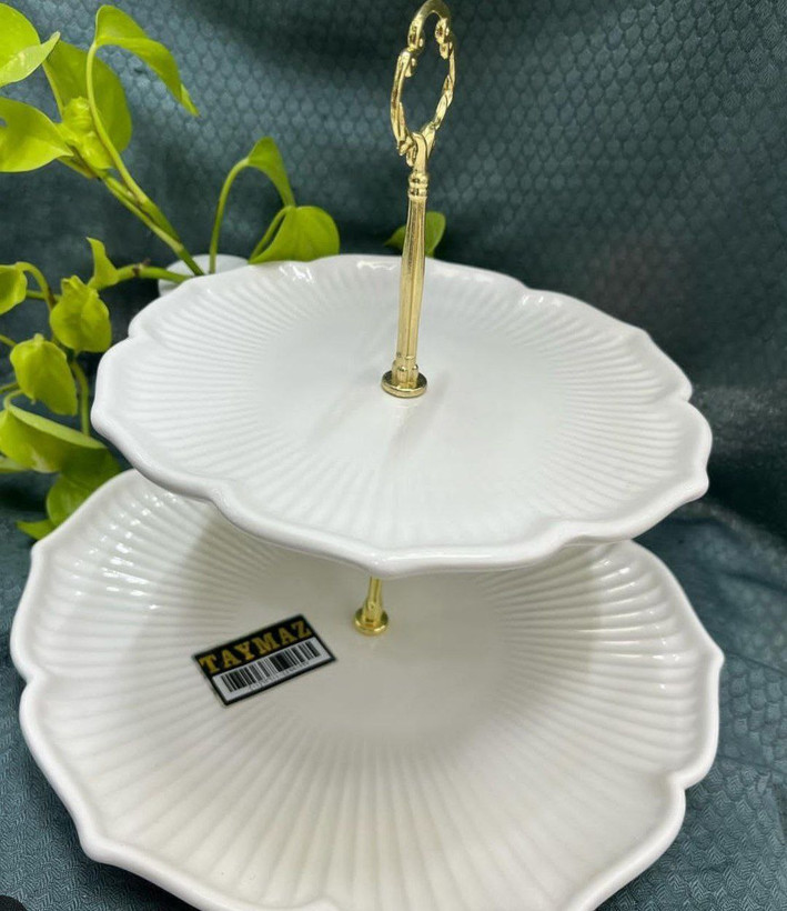شیرینی خوری دسته طلایی دو طبقه سرامیکی