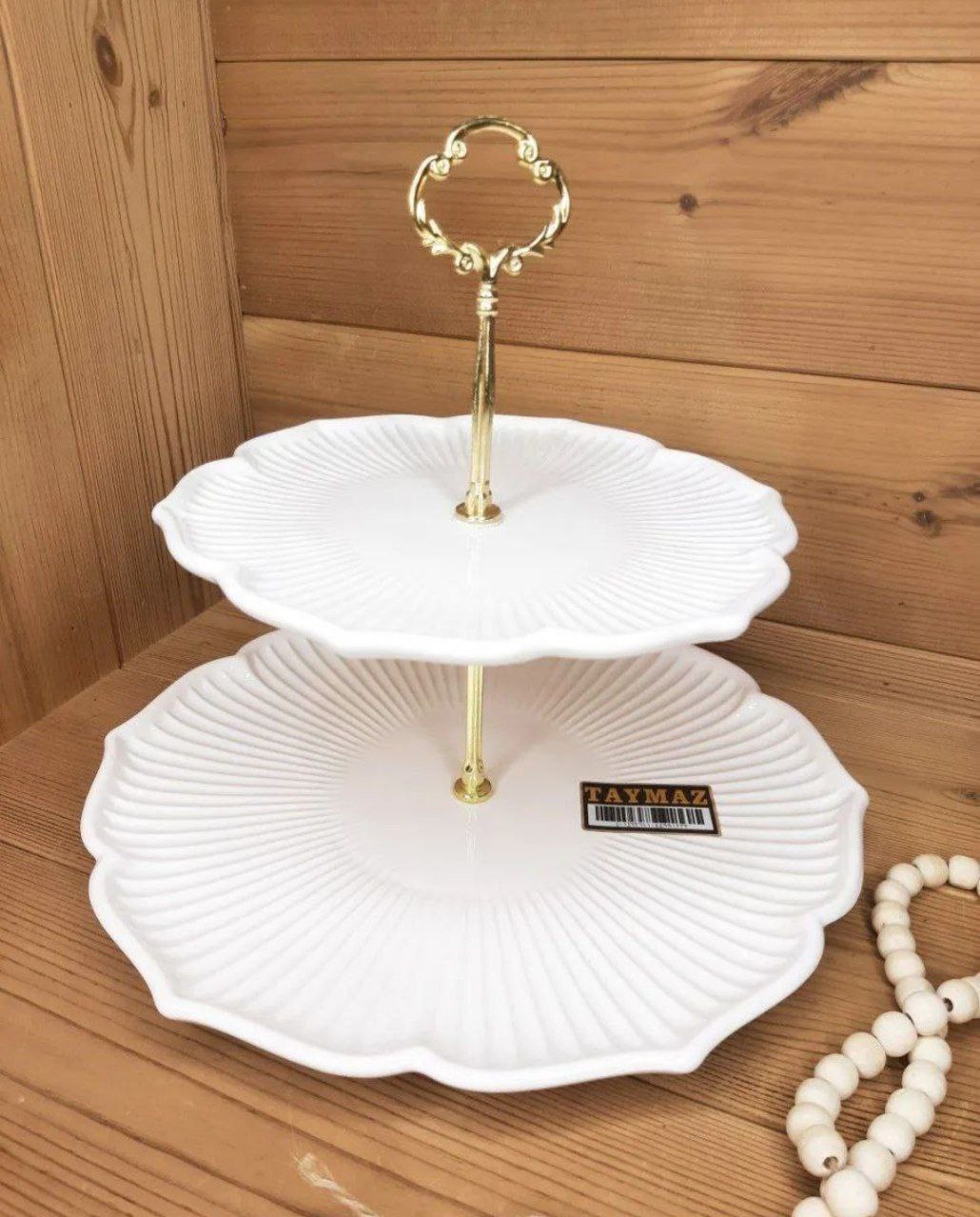 شیرینی خوری دسته طلایی دو طبقه سرامیکی