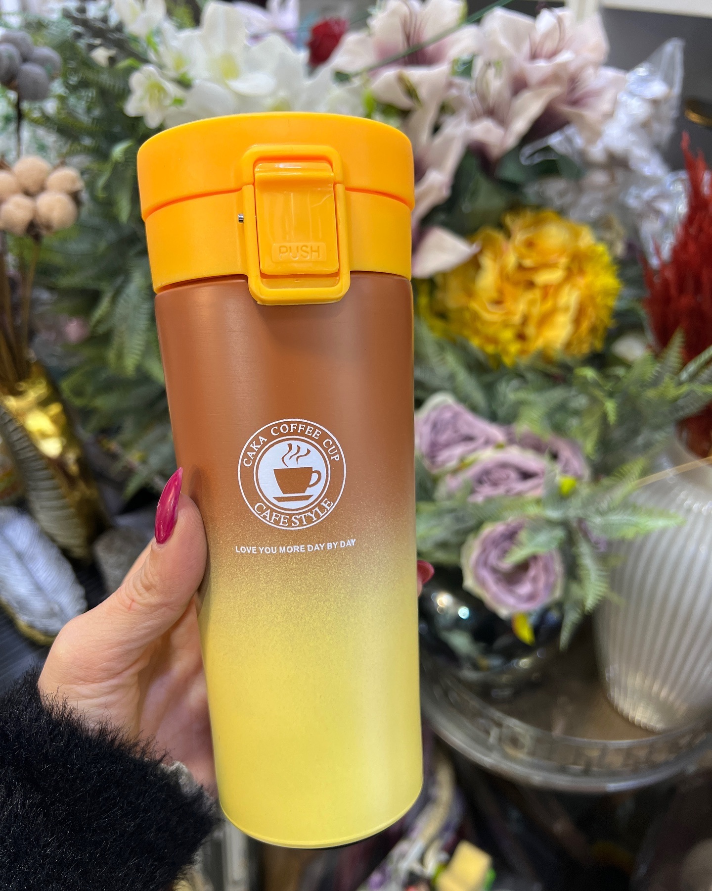 تراول ماگ پاستیلی coffe استیل 500 میلی رنگ خردلی