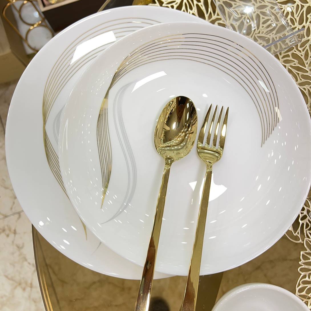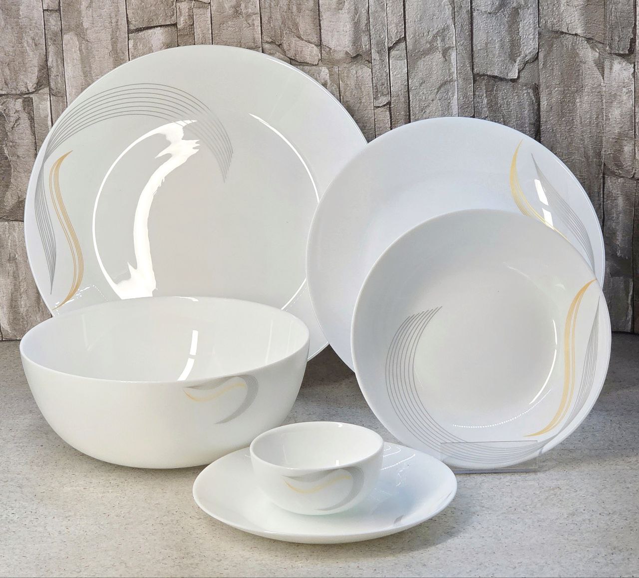 🔺۱عدد دیس _ ۶ عدد پلوخوری _ ۶عدد خورشتخوری _ ۶عدد پیش دستی _ ۶عدد پیاله _ ۱ عدد کاسه سالاد