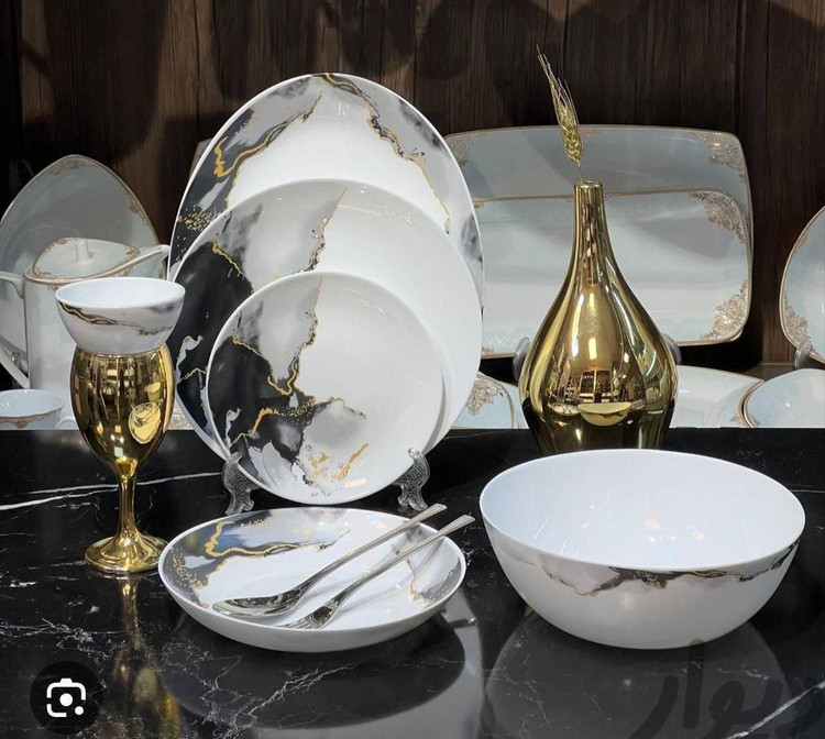✅سرویس 26پارچه طرح مرمر مشکی(سونامی)