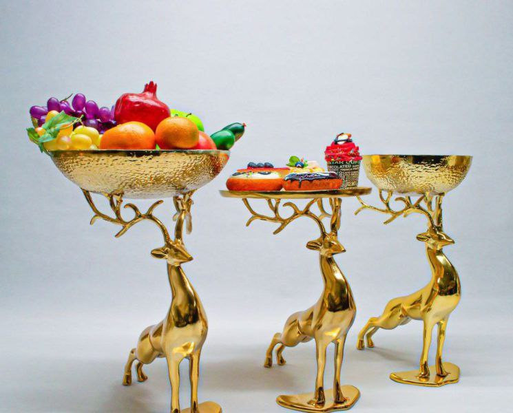 سرویس گوزن کشیده ۳ تیکه آبکاری رنگ ثابت در دورنگ طلایی و نقره ای کیفیت عالی