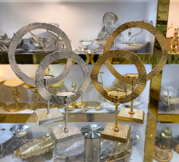 فروش ویژه جا شمعی رینگی ۲ سایز آبکاری درجه یک در دورنگ طلایی و نقره ای