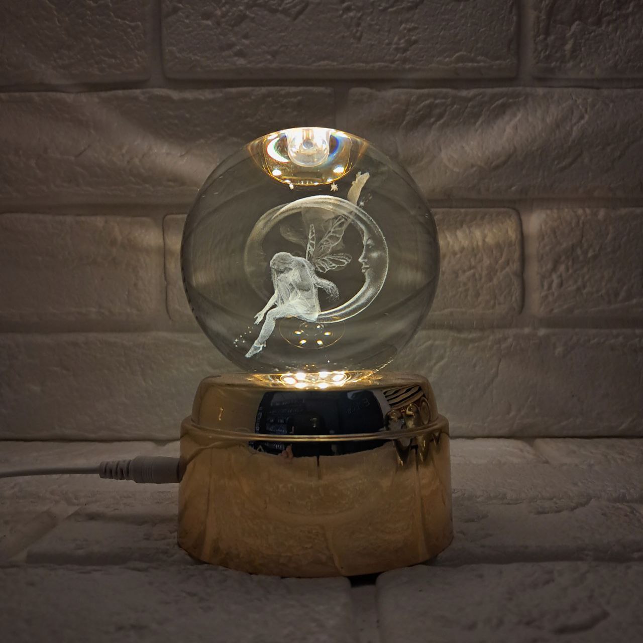 گوی چرخشی چراغدار پایه طلایی در ۲ سایز