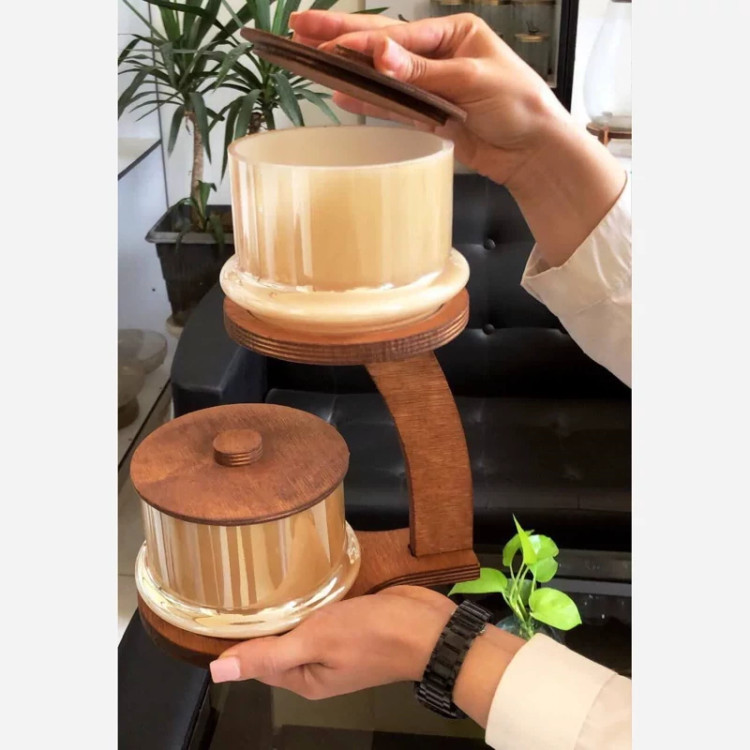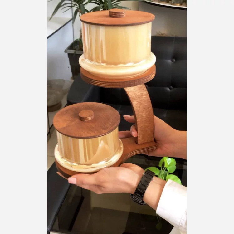 کاسه تنقلات کاراملی دو طبقه چوبی