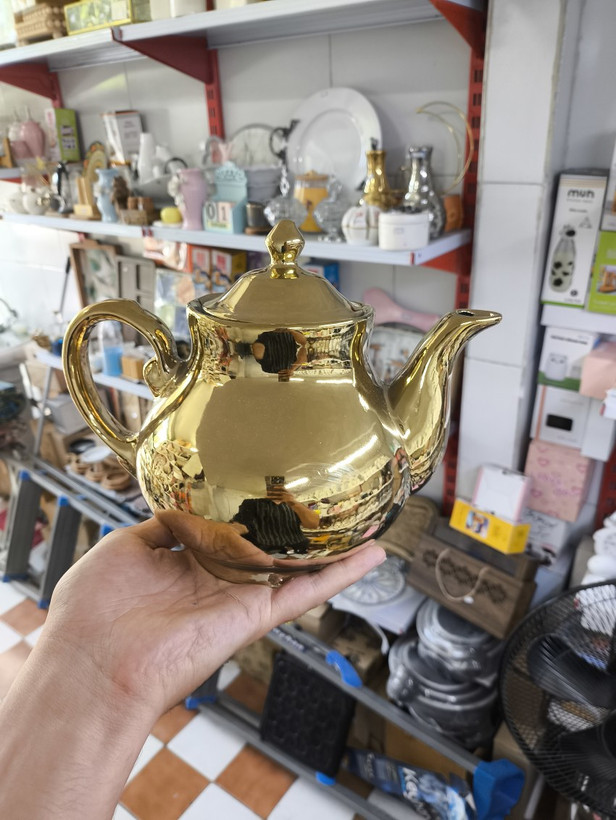 قوری بزرگ ۲ لیتری طلایی چینی کیفیت عالی