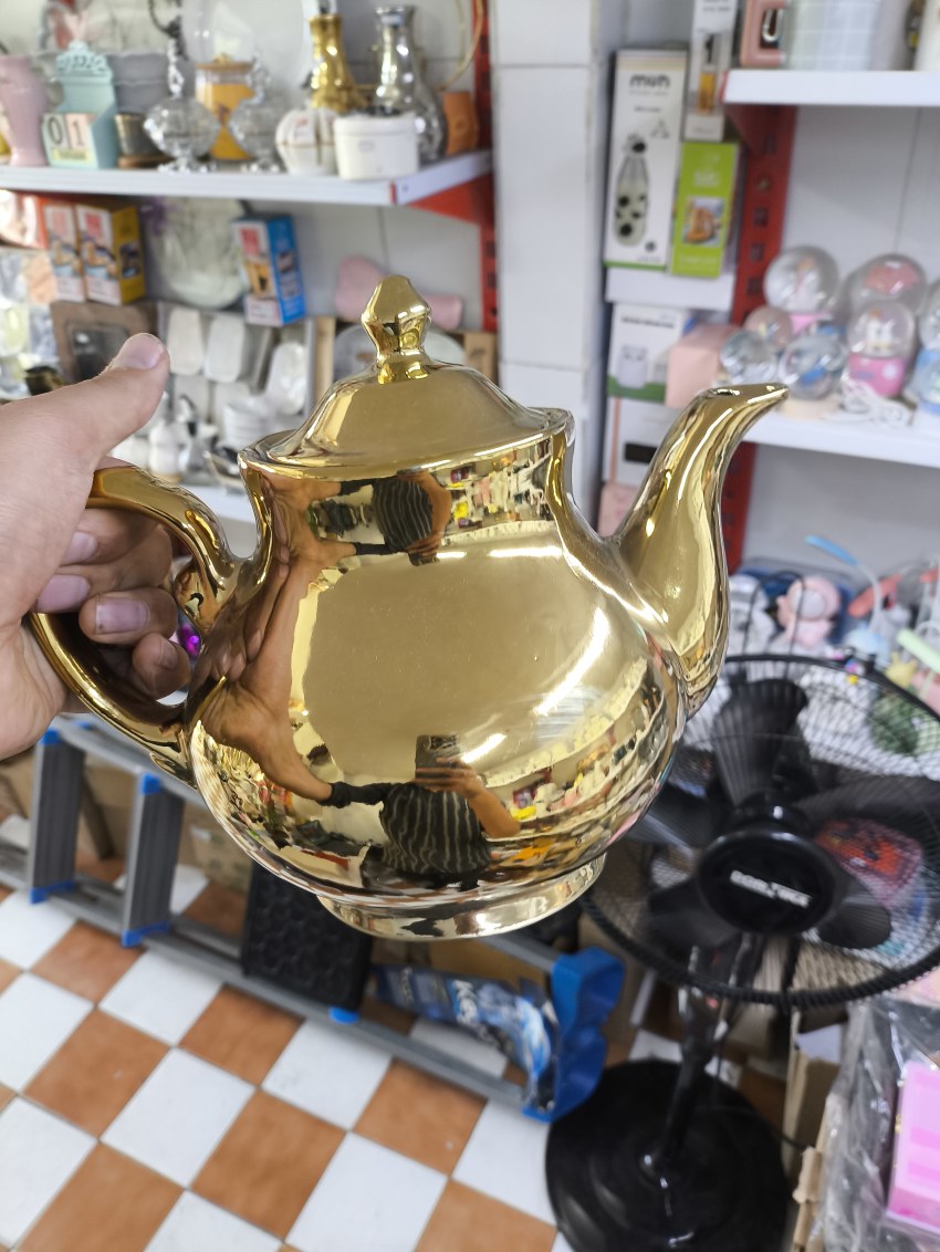 قوری بزرگ ۲ لیتری طلایی چینی کیفیت عالی