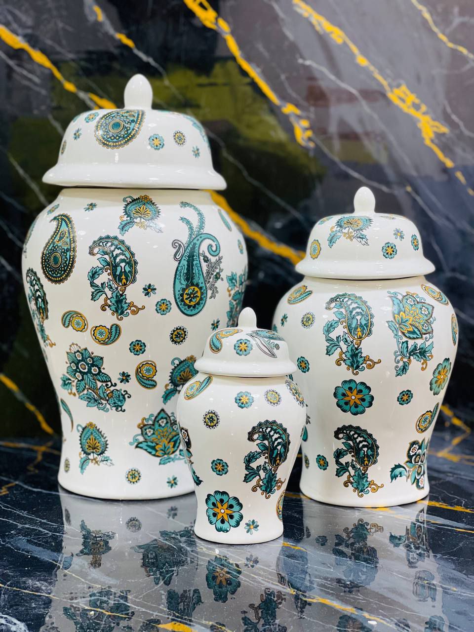 جینجرجار۳ سایز سرامیکی گل ابی قابل شستشو،سه بار تا دمای 1090پخته شده