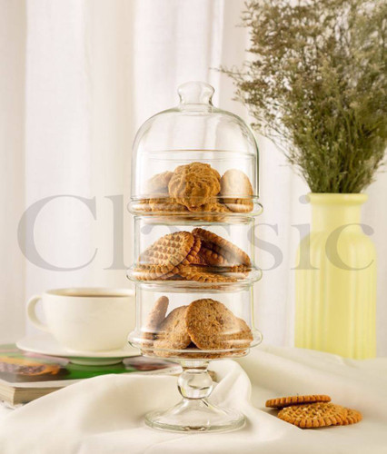 شیرینی خوری دسته طلایی دو طبقه سرامیکی