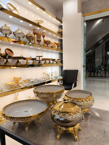 کاسه آجیل خوری پایه شیشه شامپاینی PVD